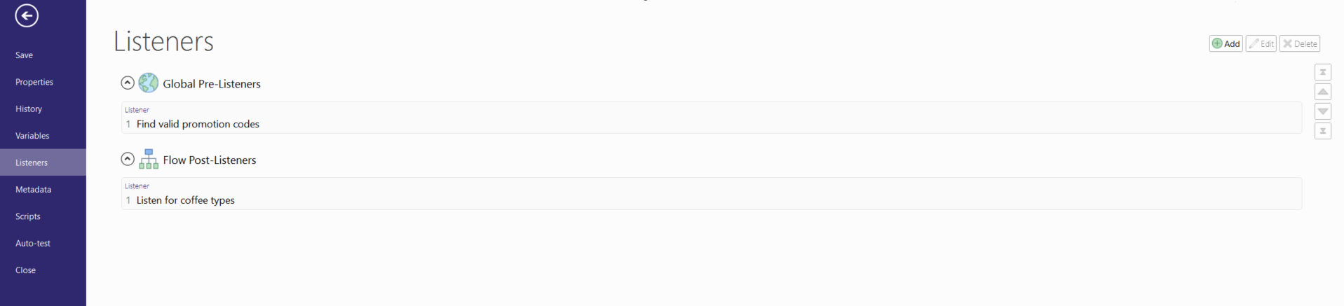 Please see below how to add, edit, and delete a Flow Listener.